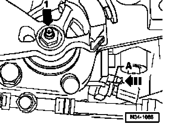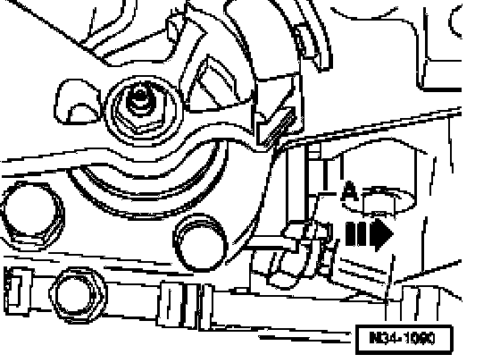 ^ If shift mechanism is correctly adjusted, locking pin -A- can now be pushed into transmission (direction of arrow) and thus into selector shaft gate (2nd mechanic).