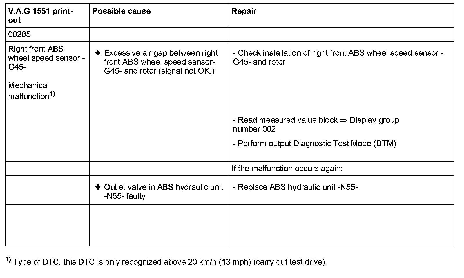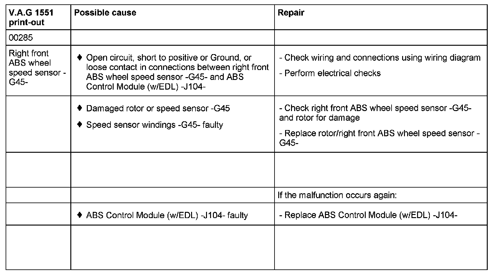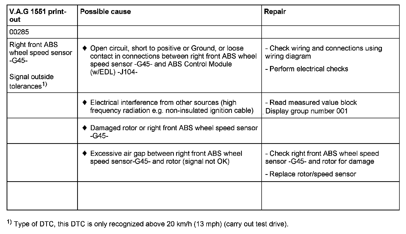 00285 Right front ABS wheel speed sensor -G45-