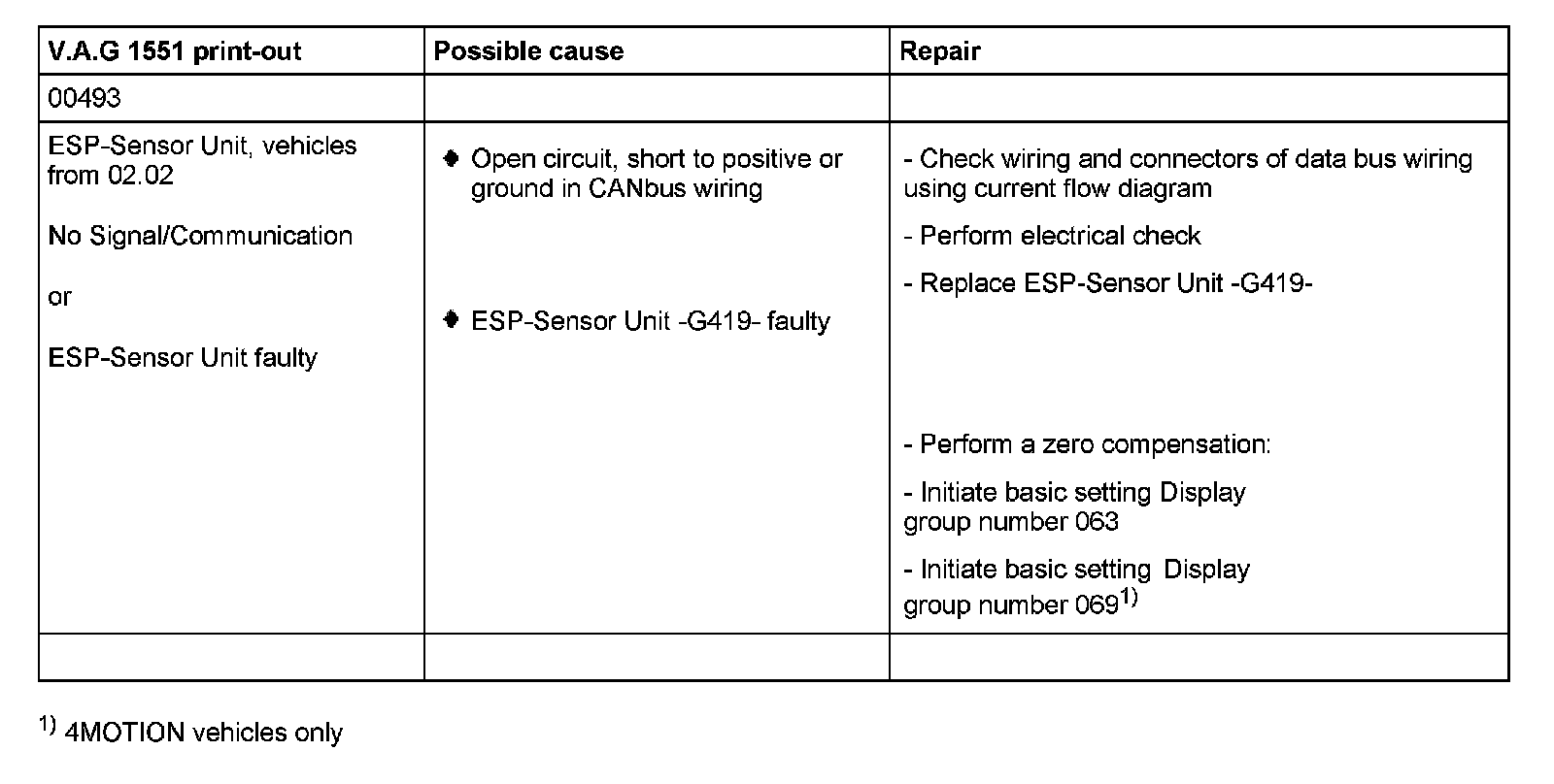 00493 ESP Sensor Unit, vehicles front 02.02 / No signal/communition or ESP-Sensor unit faulty