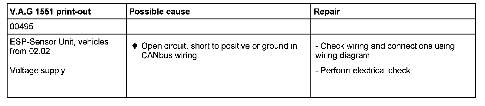 00495 ESP Sensor Unit, vehicles from 02.02 / Voltage supply