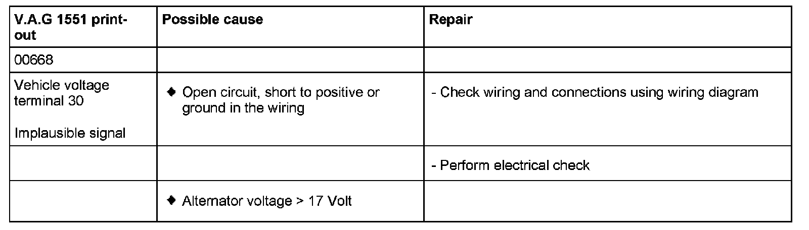 00668 Vehicle voltage terminal 30 / Implausible signal
