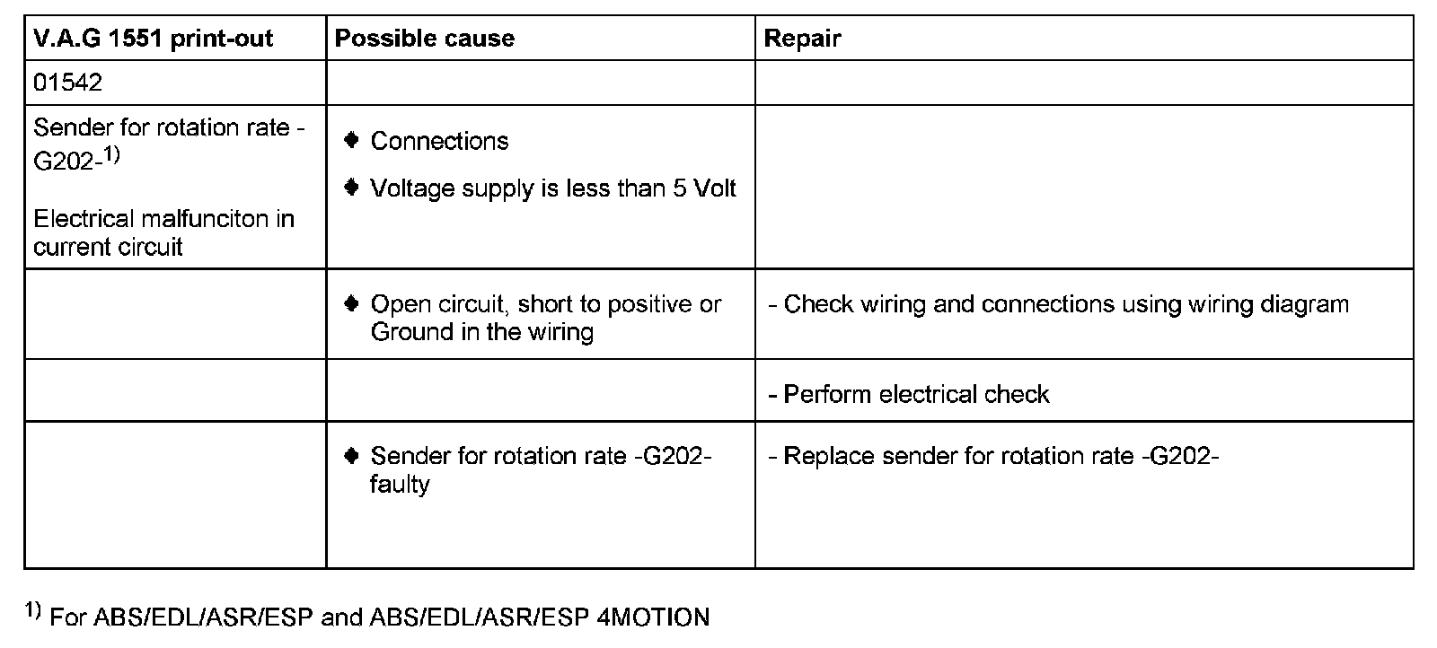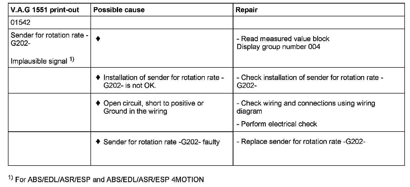 01542 Sender for rotation rate - G202- / Implausible signal
