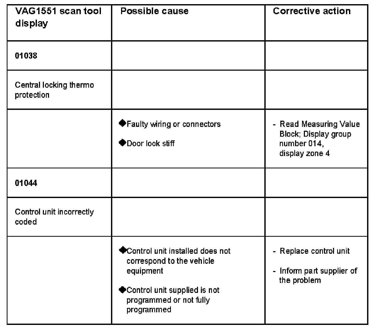 DTC 01038 - 01044:
