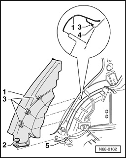 - Remove trim - 1 - from body flange - 4 - with clips - 3 -.