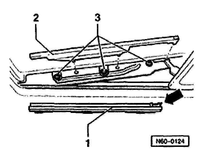- Unclip lower trim -1- in rear area (arrow), slide forward and remove from roof frame.