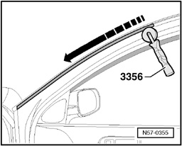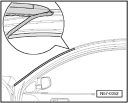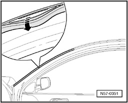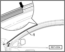- Attach auxiliary seal - 1 - at top at sealing seam - arrow -. Press on auxiliary seal to door from top to bottom. A dimension - a - of approx. 21 mm results at end of additional seal to door flange.