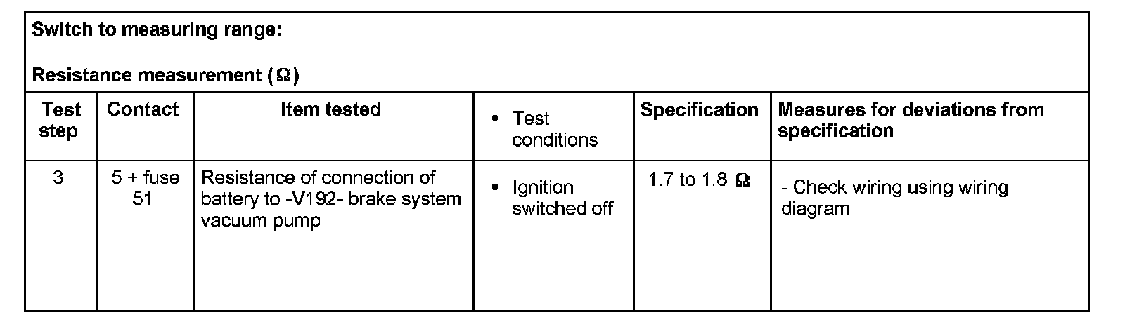 - If the readings obtained deviate from the specifications, carry out repair measure in the right-hand part of the table.