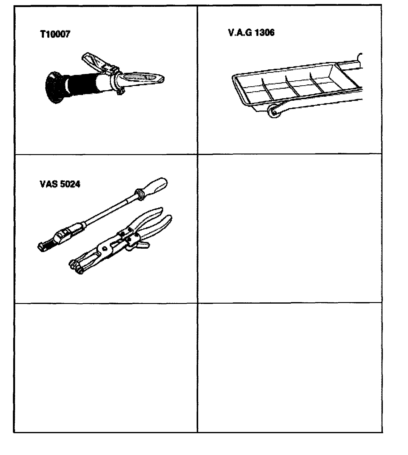 ^ If the fluid in expansion tank is brown; G 12 has been mixed with another coolant. Drain the system and replace with fresh engine coolant.