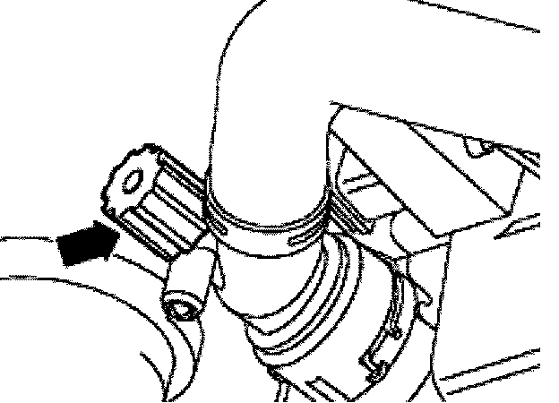 - Unscrew radiator drain plug to drain engine coolant (arrow)