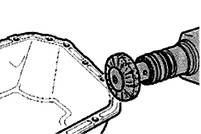 - Remove oil pan. If necessary, tap lightly with a rubber hammer.