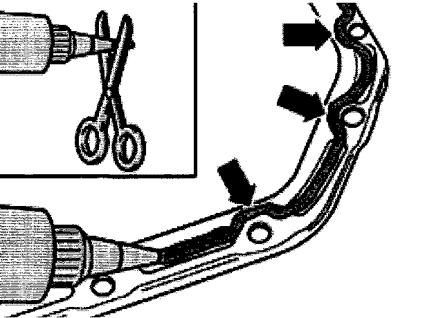 - Apply silicone sealing bead as shown to clean sealing surface of oil pan (Illustration shows position of sealant bead on engine block).