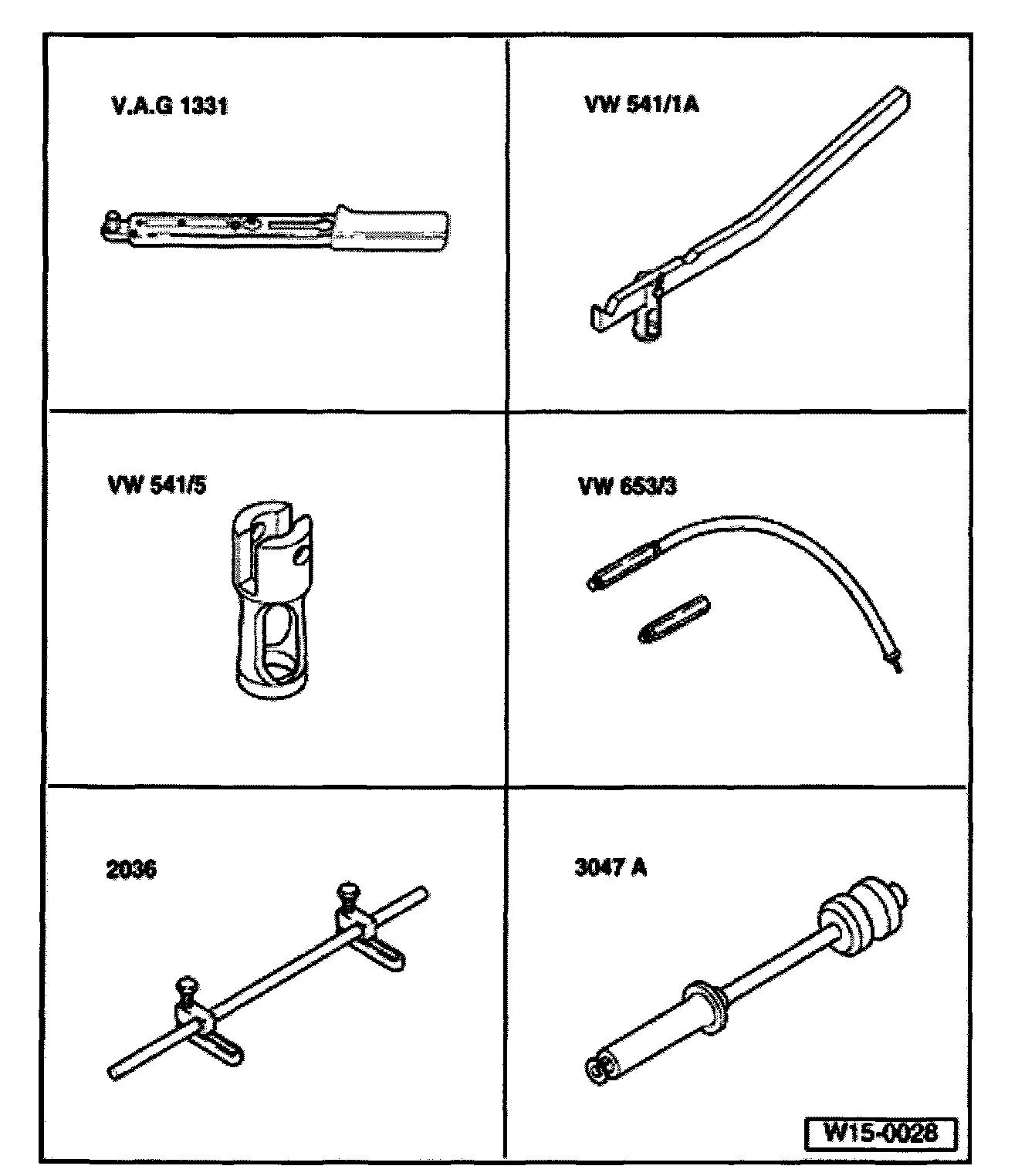 ^ V.A.G 1331 Torque wrench 5 to 50 Nm (3.7 to 37 ft. lbs.), or equivalent