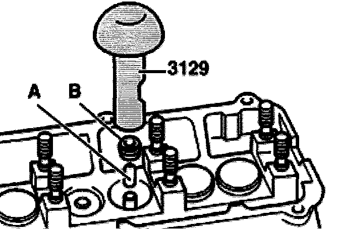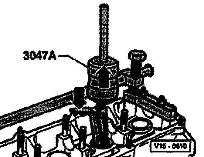 - Remove valve springs with VW 541/1A lever and VW 541/5 press piece.