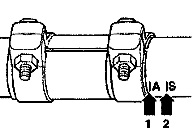 - Position dual clamp with 5 mm distance for mark A (arrow 1).