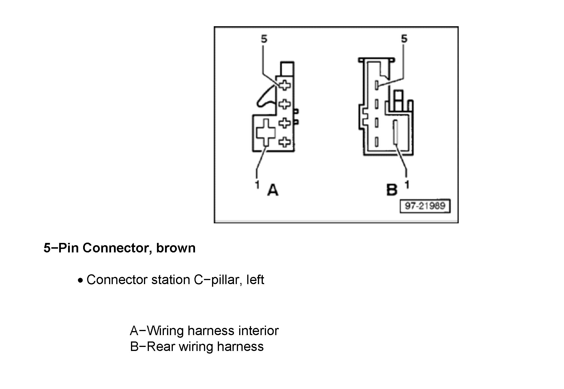 5-Pin Connector, brown, connector station C-pillar, left and D-pillar, right and connector station in rear lid