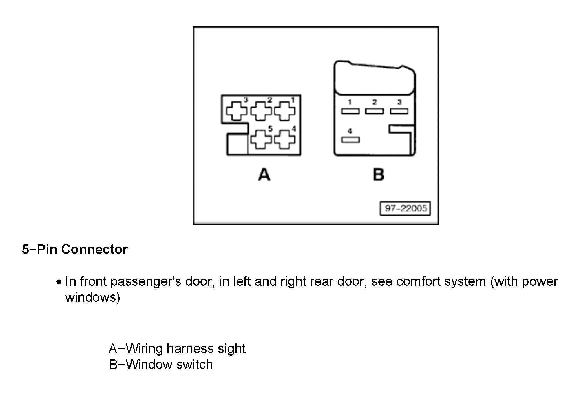 5-Pin Connector, in front passenger's door, in left- and right rear door