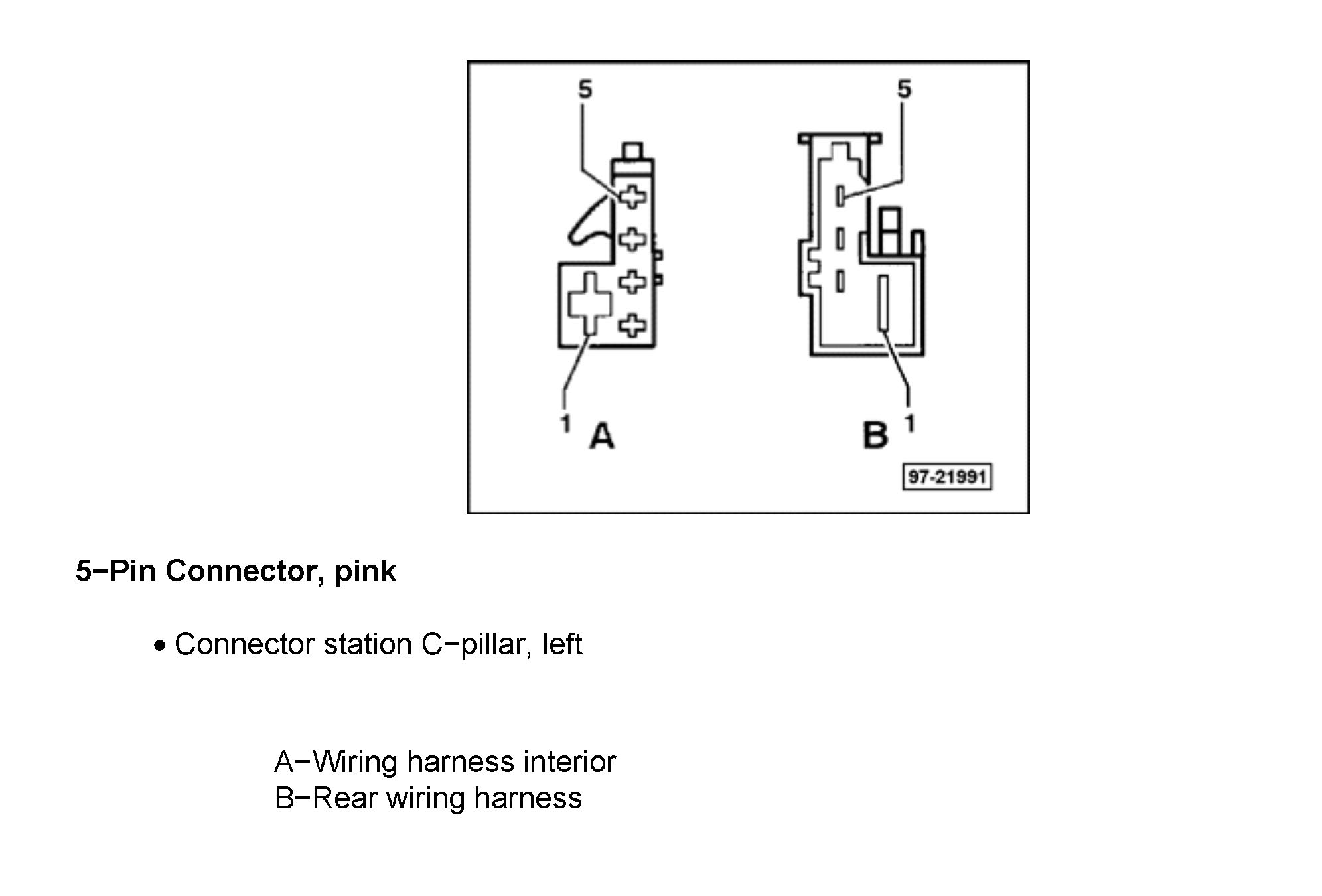 5-Pin Connector, pink, connector station C-pillar, left and D-pillar, right and connector station in rear lid