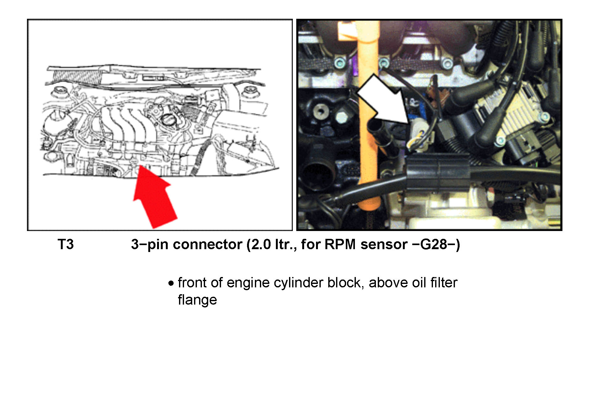 T3 - 3-pin connector (2.0 ltr., for RPM sensor -G28-)