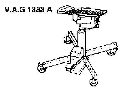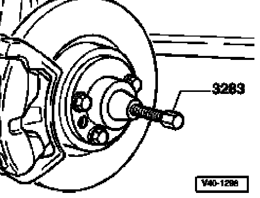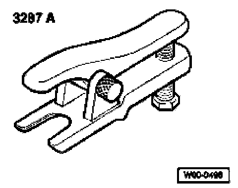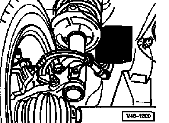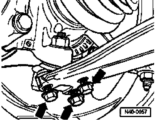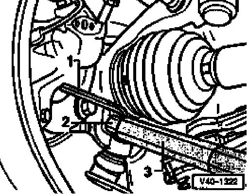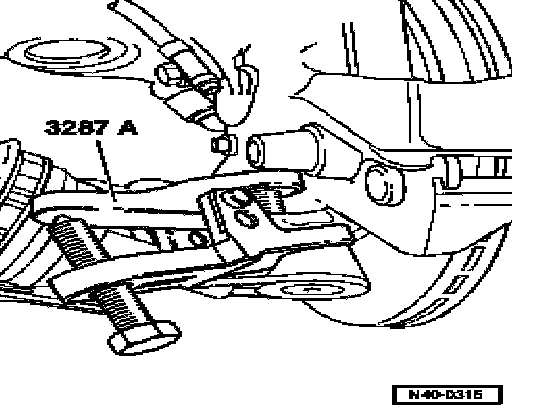 ^ Place engine/transmission jack VAG 1383/A, or similar, underneath to ensure safety (danger of accident through falling parts when pressing out the ball joint).