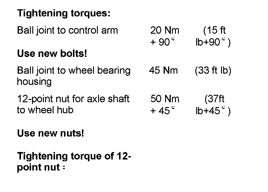 Vehicle must be standing on its wheels when loosening or tightening 12 point axle nut