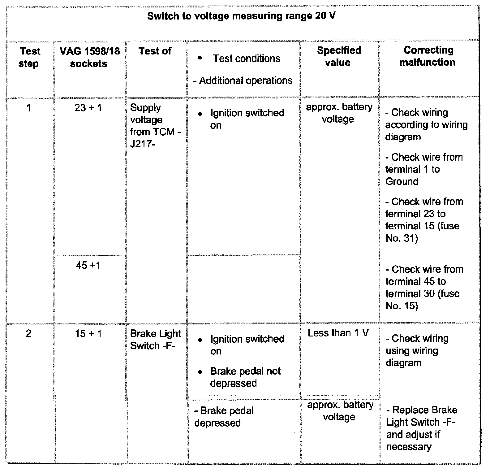 - For testing use a Fluke 83 multimeter or equivalent with auxiliary wiring from VAG 1594.