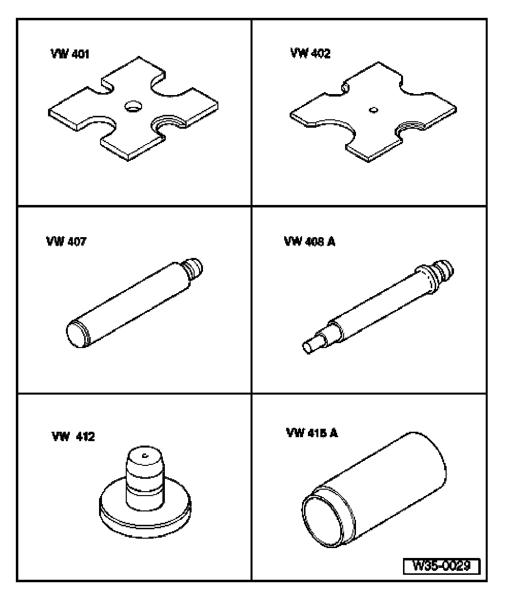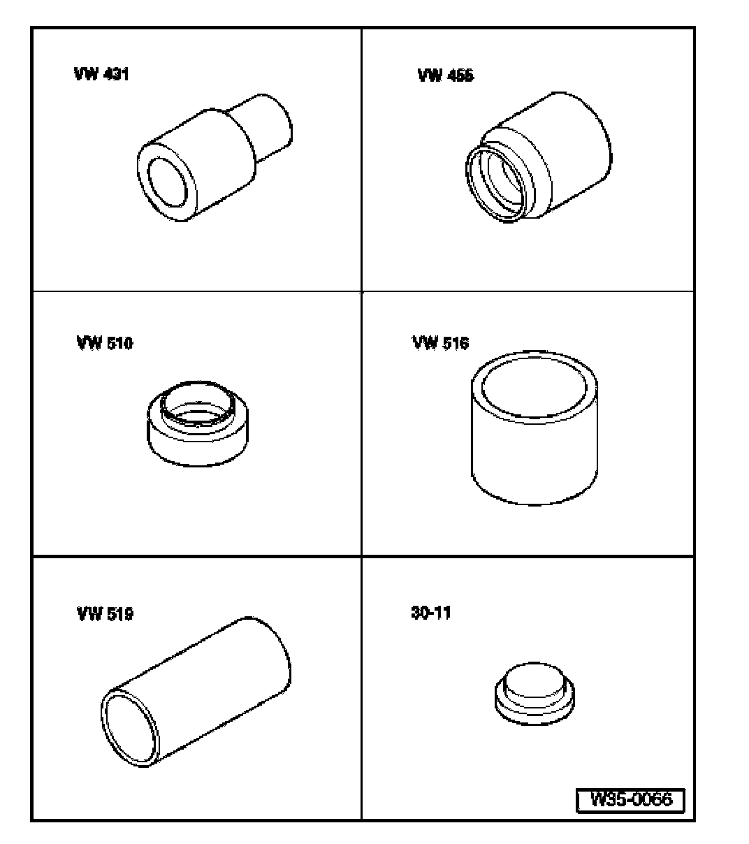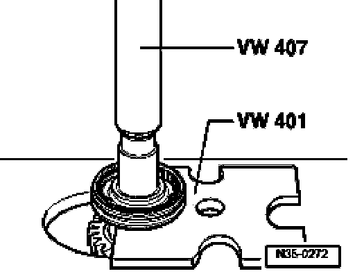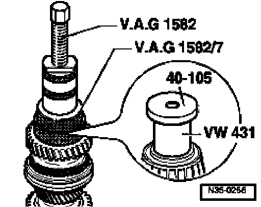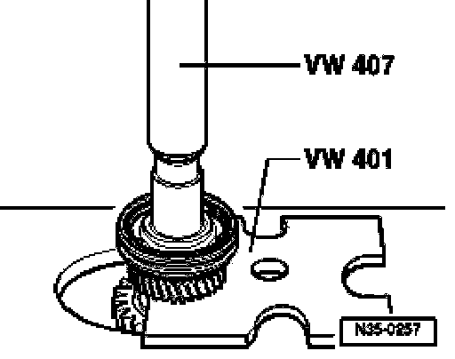 ^ Before mounting extractor, position press piece VW 431 and thrust plate 40-105 on output shaft.