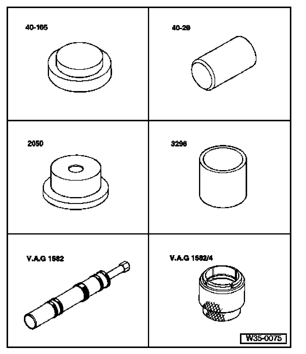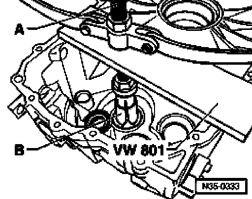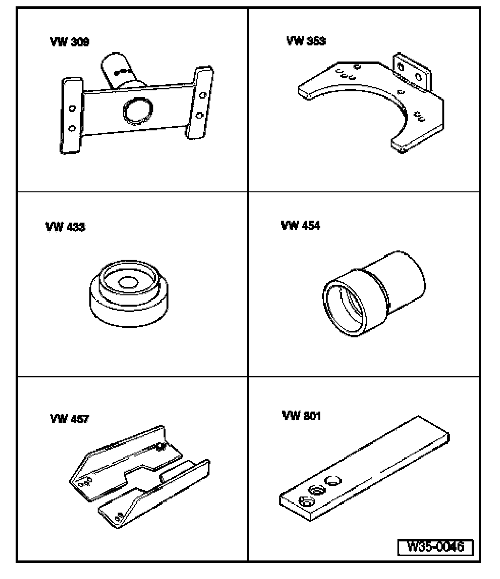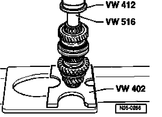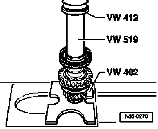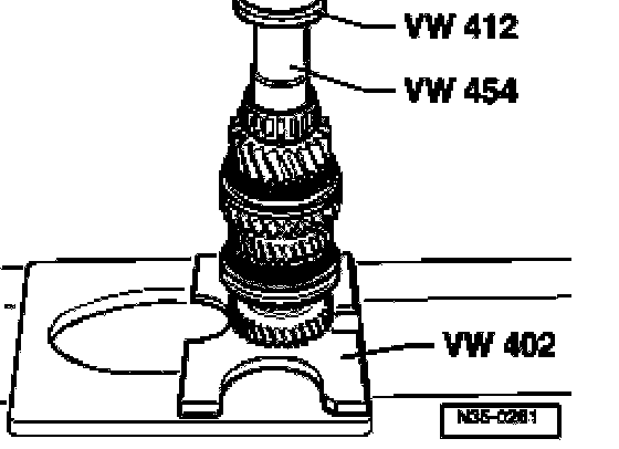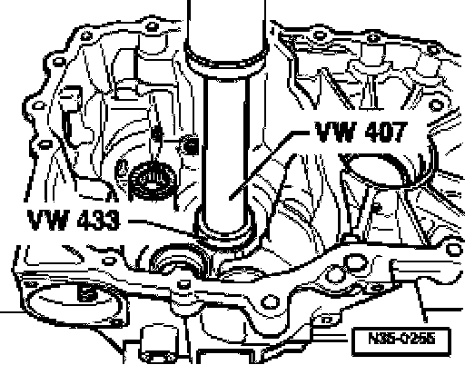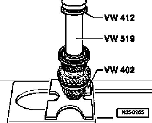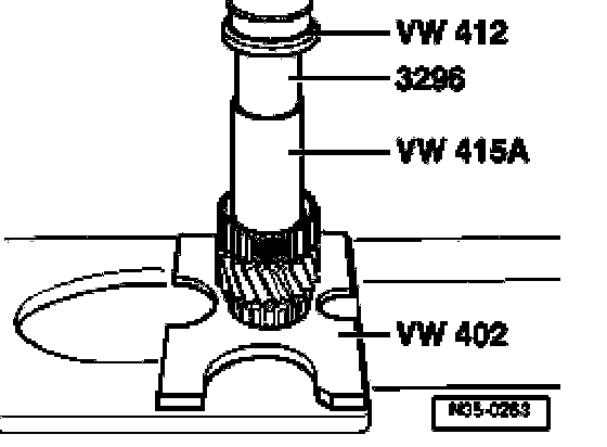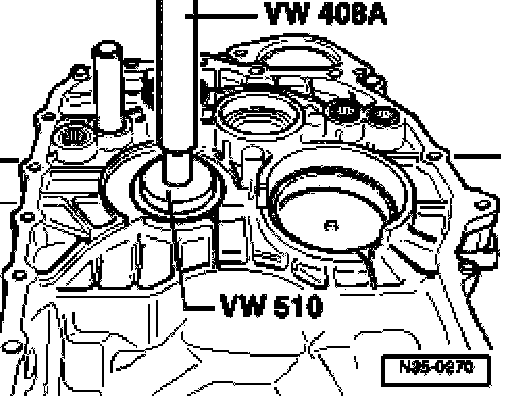 ^ Support transmission housing with press tool 40-20 directly below bearing mounting.