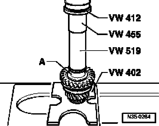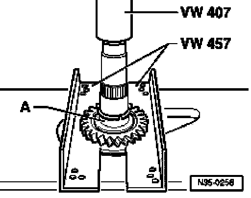 Fig. 6 Pressing off sleeve -A- over reverse gear wheel