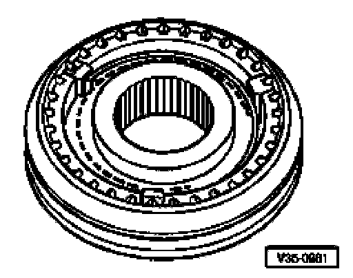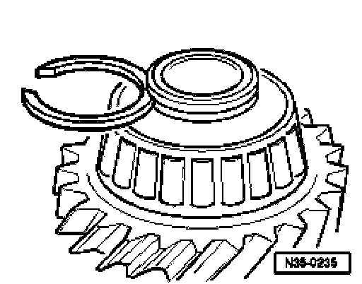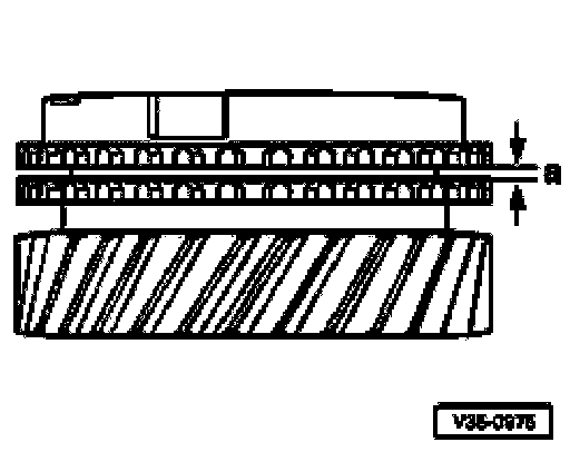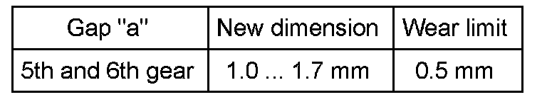 ^ Press synchro-ring onto gear cone and measure gap "a" with feeler gauge.