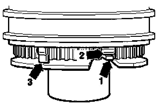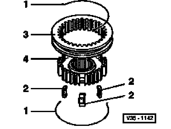 Lugs (arrow -1-) of spacer sleeve must line up with recesses in synchro-hub (arrow -2-).