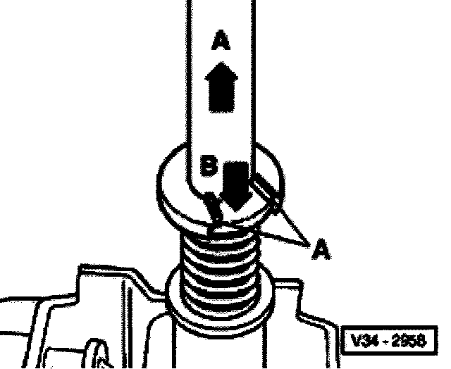 - To remove and install circlip pull gear lever in direction of arrow -A- while pushing down spacer bushing onto stop with a screwdriver in arrow direction -B-.