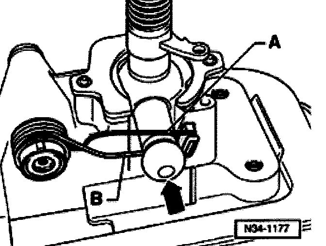 - Insert spring so that spring extension -A- lies above pin (arrow).