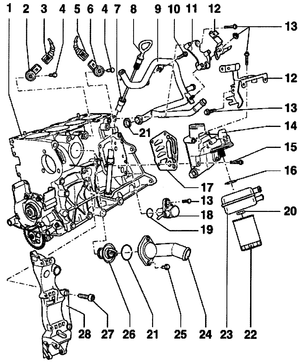 - If during engine repairs, metal shavings or large quantities of small metal particles caused, for example, by partial seizure of crankshaft and conrod bearings - are found in the engine oil: To prevent consequential damage, besides thoroughly cleaning out the oil passages, you must also replace the oil cooler.