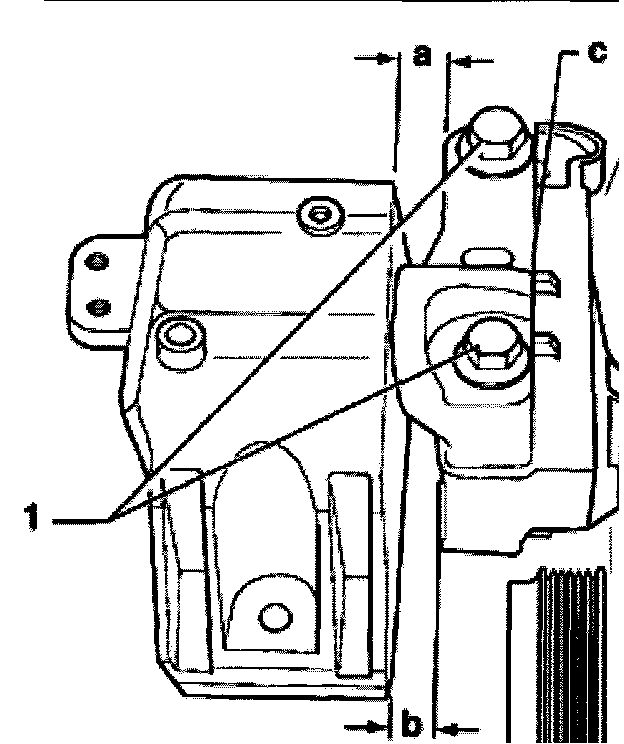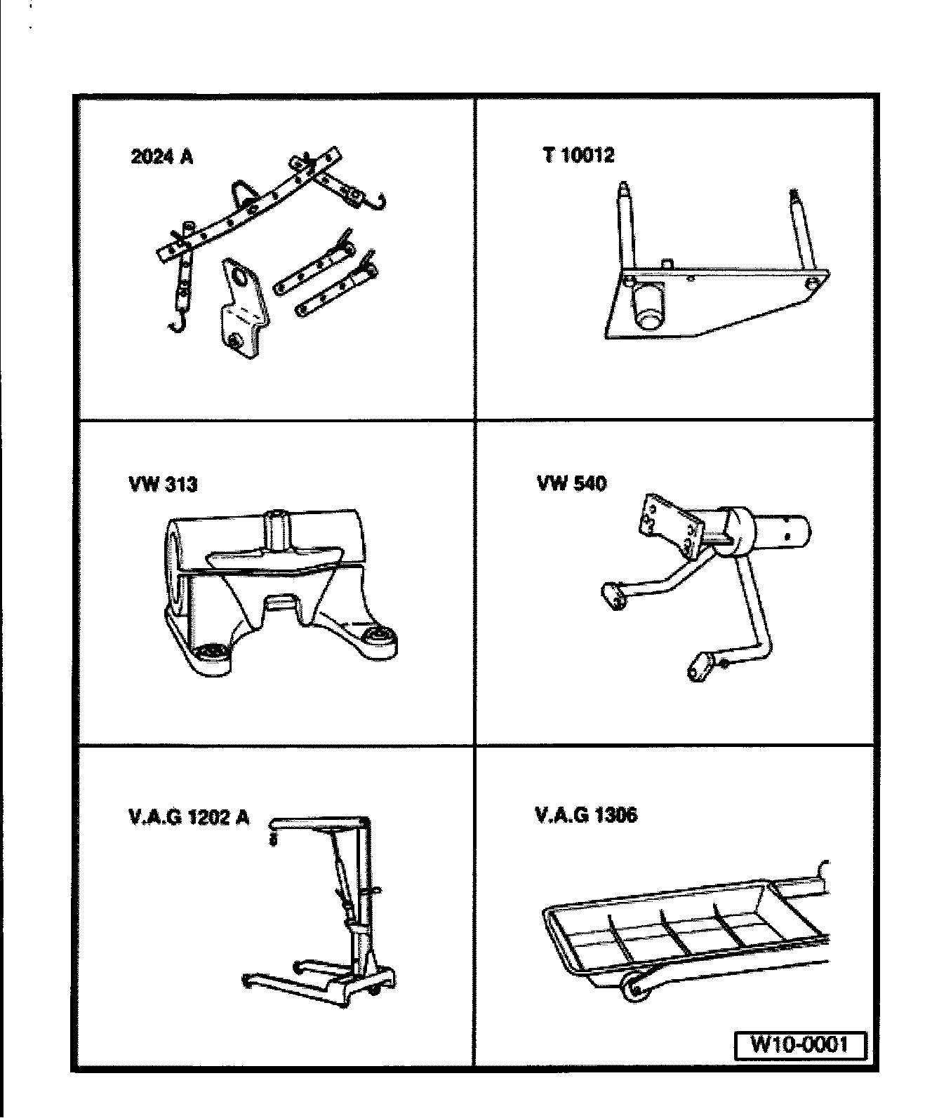 - Install engine bracket T100/12 in V.A.G 1383 A engine/transmission jack.