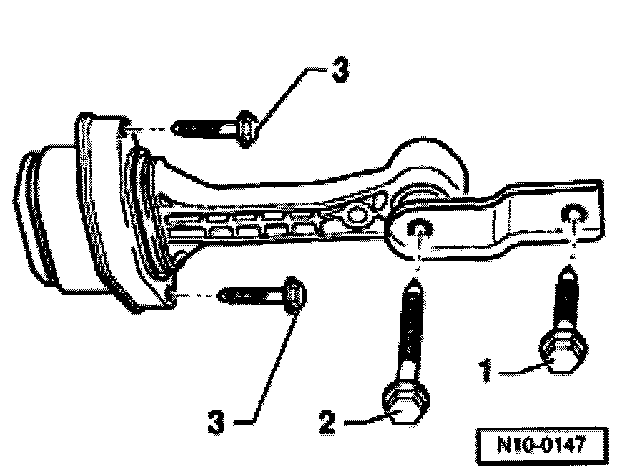 - Attach engine bracket T10012 using fastening nut and screw M10 X 25/ 8.8 with approx.