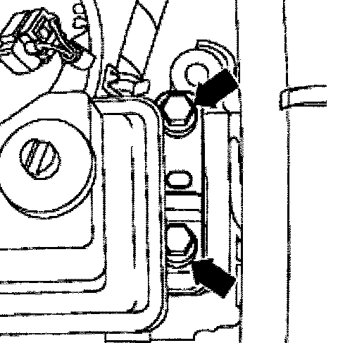 - Remove bolts (transmission side) from transmission mount (arrows) from the top.