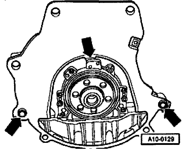- Install intermediate plate onto sealing flange and slide onto dowel sleeves (arrows).