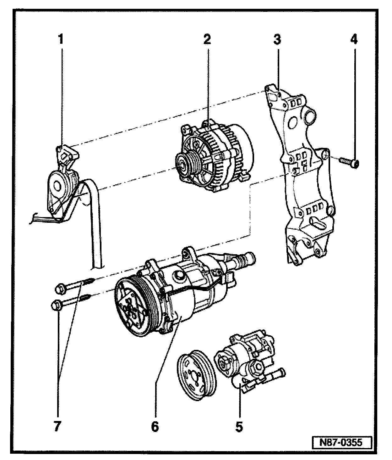 NOTE: The compressor bracket and related components can be removed and installed without discharging the refrigerant circuit.