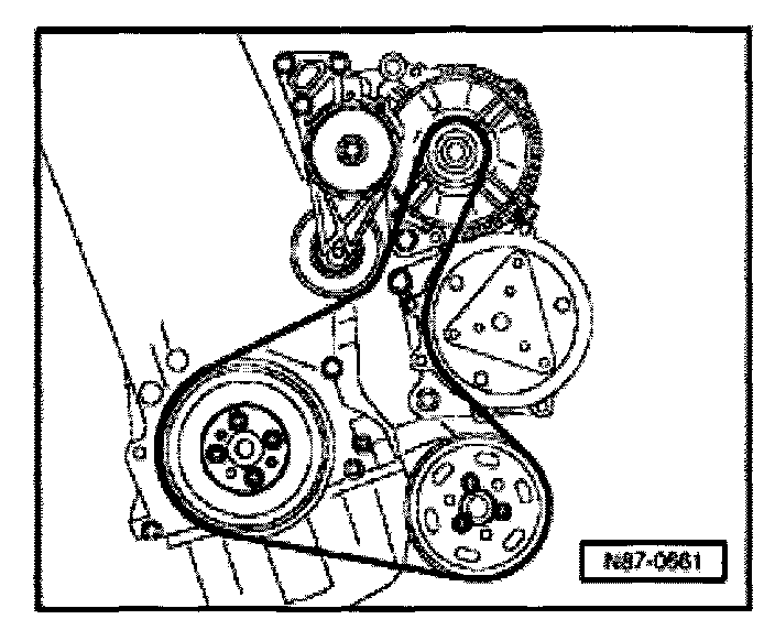 NOTE: Before removing ribbed belt, mark direction of rotation. When installing the belt ensure it is correctly seated in the pulley.