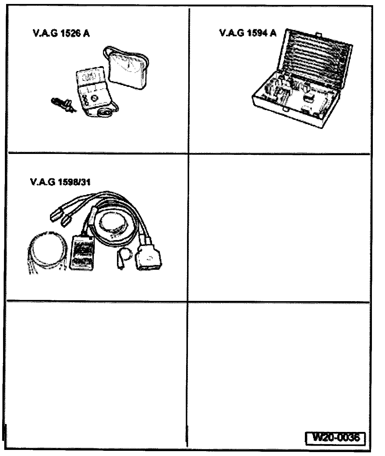 - V.A.G 1551 Scan Tool or mobile scan tool V.A.G 1552 with adapter cable V.A.G 1551/3
