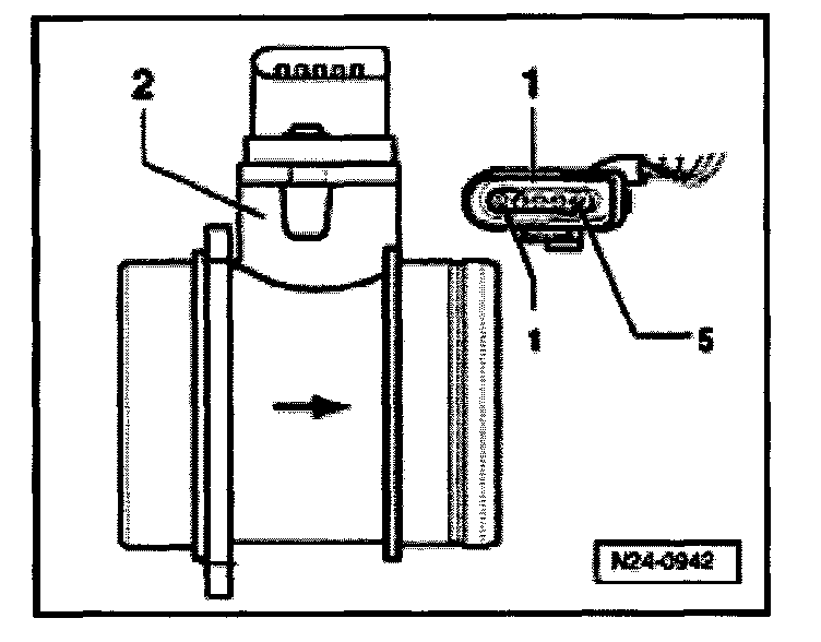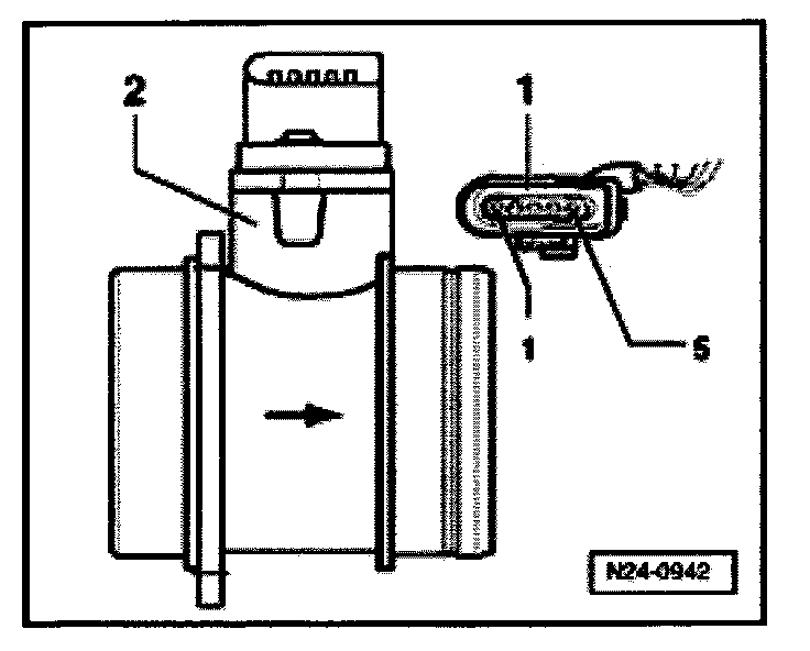 - Disconnect 5-pin connector -1- from Mass Air Flow (MAF) sensor -2-.