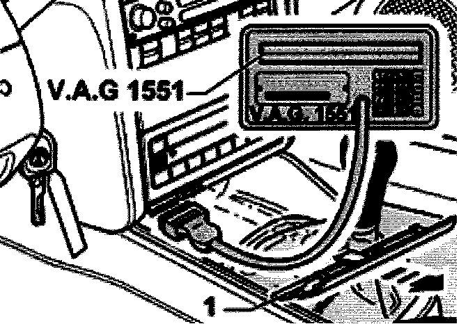 - With ignition switched off, connect V.A.G 1551 Scan Tool with diagnosis cable V.A.G 1551/3A.