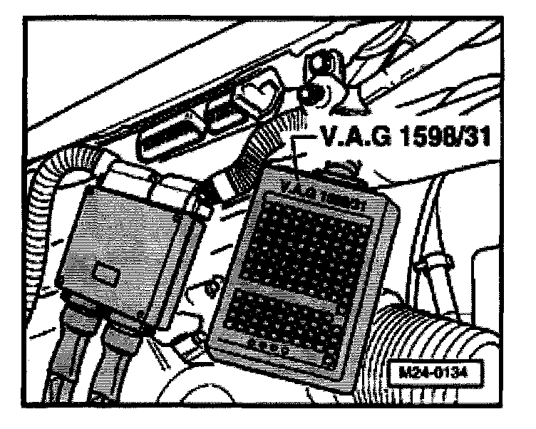 - Connect test box VAG 1598/31 to control module wiring harness. The engine control module remains disconnected.