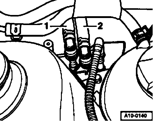 - Pull off supply hose -1- (with white marking) and collect fuel which leaks out in a cloth.