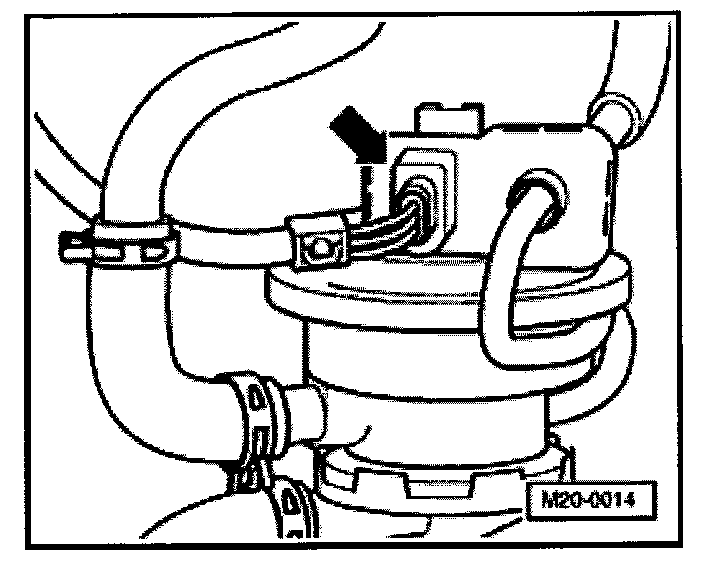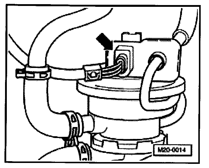 - Disconnect 3-pin harness connector from Leak Detection Pump (LDP) -V144- (arrow).