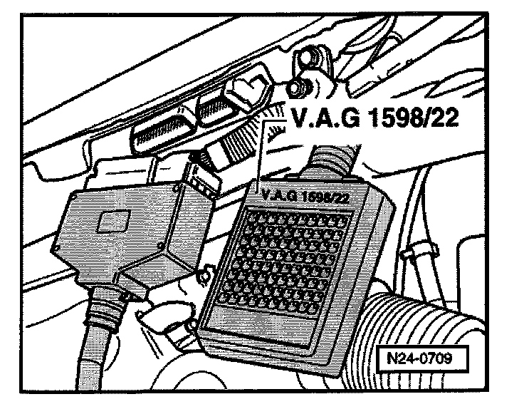 - Connect test box VAG 1598/22 to ECM wiring harness.