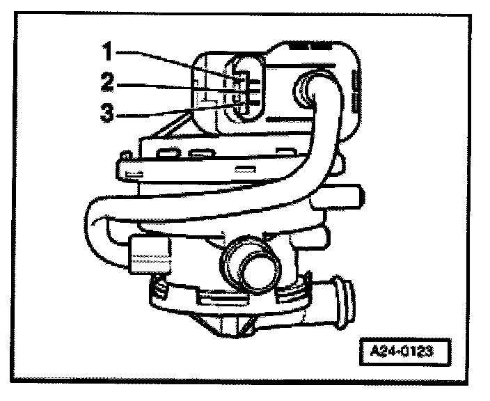- Connect Fluke 83 multimeter between terminals 2 and 3 of Leak Detection Pump -V144- and measure resistance.