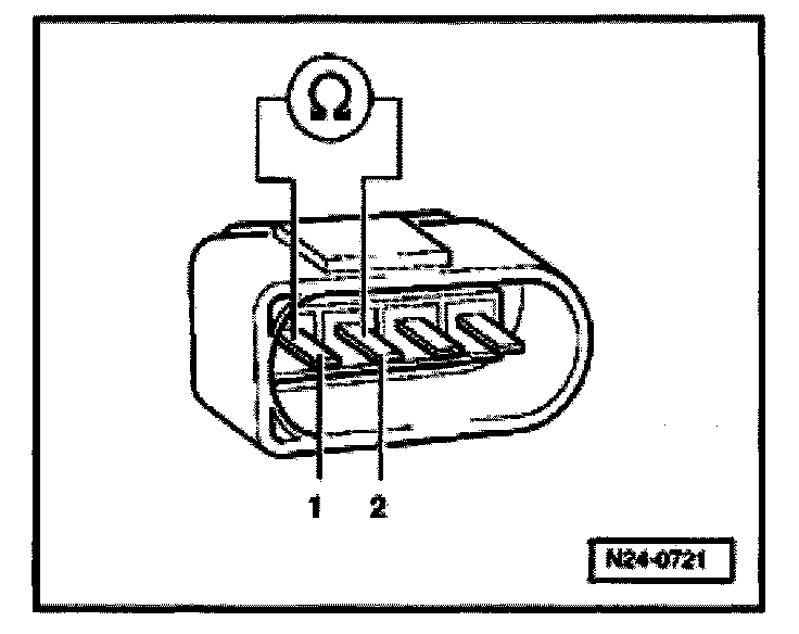 - Set multimeter for resistance measurement and connect it to terminals 1 + 2 at connector for oxygen sensor. Check oxygen sensor heater for continuity.