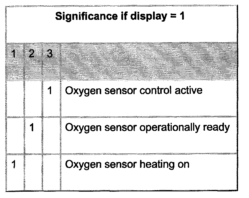 NOTE: The first position of the 3 digit number block fluctuates between 0 and 1 (Oxygen sensor heating on and off).