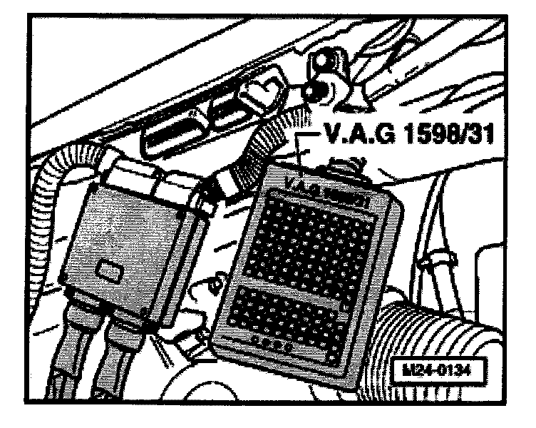 - Connect test box VAG1598/31 to control module wiring harness. The engine control module remains disconnected.